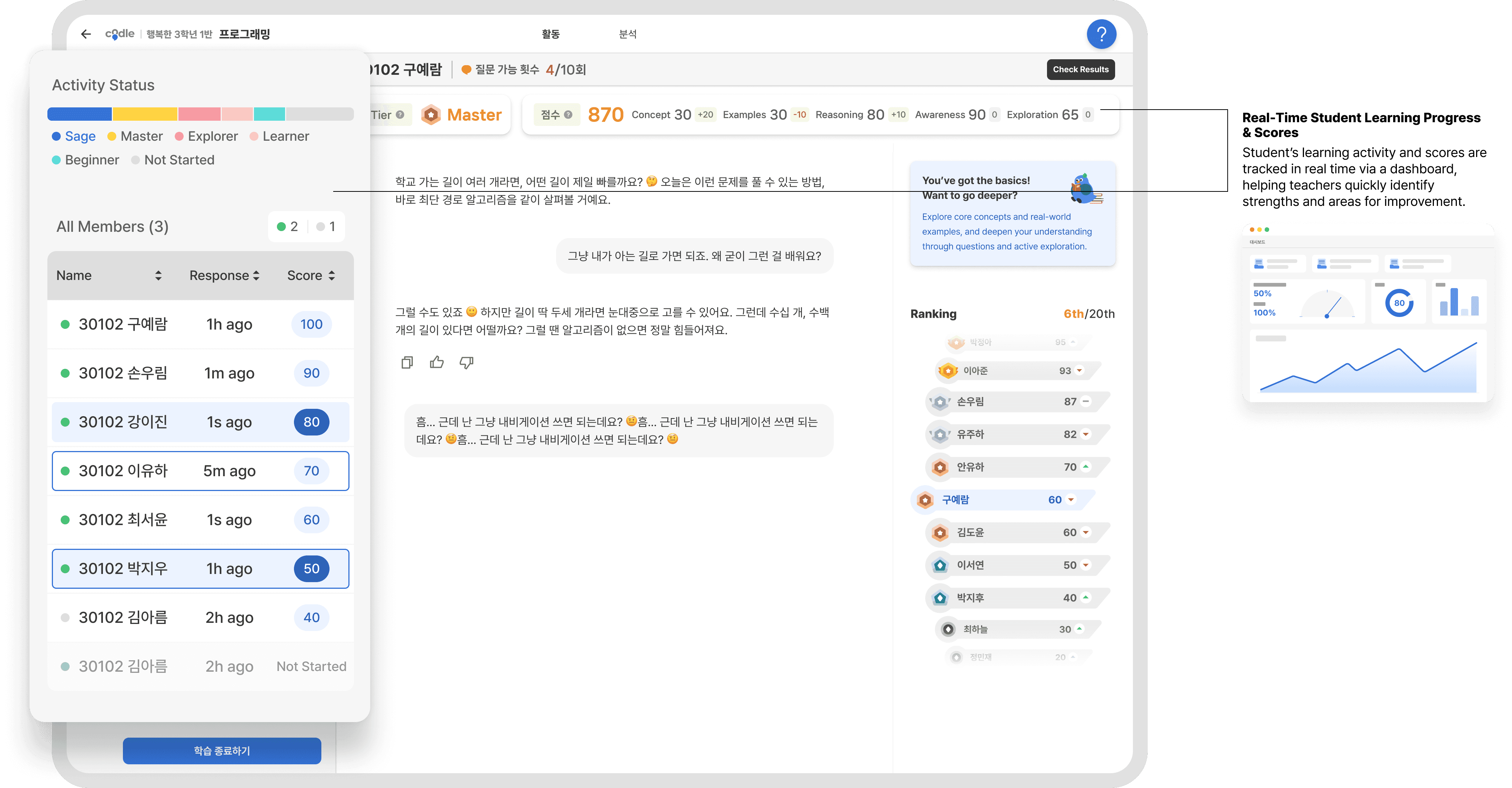 While Codle supported dashboard-based management of class results, AI conversational classes were not integrated, resulting in a fragmented teacher experience.